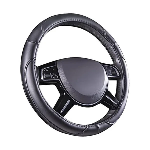 • Leatherette steering wheel cover helps protect the wheel, provides a nice appearance, and offers a more comfortable, secure hold