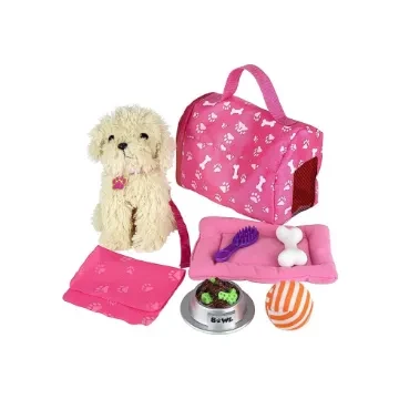 • Great Gifts for Girls or Boys Ages 3 and Up: The Click N' Play puppy toy is cute and adorable. It's a great pretend play set for toddlers and kids (3-6 years old). It's definitely the perfect toy and a great gift for kids who love dogs on birthdays, holidays, and any other special occasion. It's an especially great gift for a 3-year-old girl.Encourage Imagination and Role-Play Fun: Click N' Play offers a wide range of toy puppies that help children play, practice, and improve their pretend play skills. This puppy playset is not only cute but also has a plush texture, making it easy to cuddle. This is a great playset for 3-year-old girls that encourages imaginative play by encouraging children to pretend to feed, play with, and train their little puppy.Stylish and Portable Set: This lovable puppy toy and carrier will keep your child entertained for hours. Kids can easily transport this cute puppy wherever they go thanks to the cute pink dog carrier with a carrying handle and zipper closure. They can enjoy the companionship whenever they want. If you're looking for gifts for a 3-year-old girl, you've come to the right place!9-Piece Set for Hours of Fun: This dog doll set comes with accessories that will provide hours of fun, including a puppy doll, dog carrier, dog toy bed and blanket, dog toy leash, tennis ball, bone, food bowl, and dog toy brush. This set is perfect for girls ages 3 and up.Perfect Companion for 18-inch Dolls: Our play dog will be the perfect companion for 18-inch dolls of any style. The puppy measures 7 inches long, and its carrier measures 8 inches long x 5 inches wide x 6 inches high. We recommend it if you're looking for gifts for a 3-year-old girl.