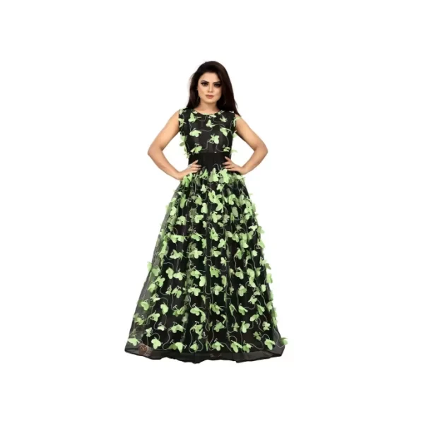 Self Design, Embellished, Embroidered Satin Blend, Net Semi Stitched Flared/A-line Gown