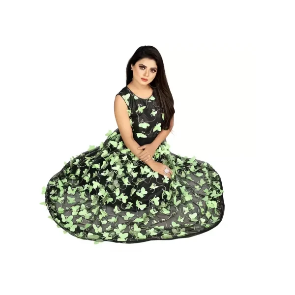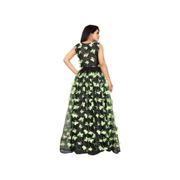 Self Design, Embellished, Embroidered Satin Blend, Net Semi Stitched Flared/A-line Gown